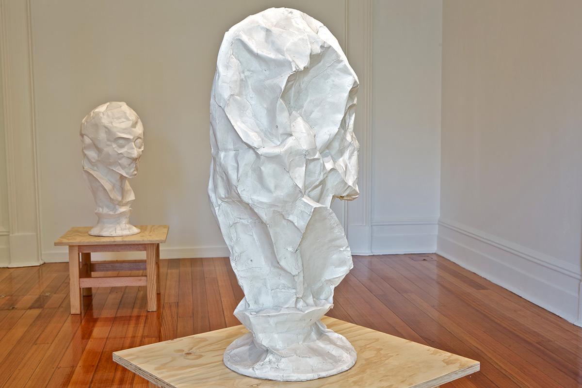 Upon return to Australia, the works in Enlightenment Figures continue the cycle of this generation of image, process, material and subsequently history. The vulnerable becomes permanently fixed by Turning Plaster in to Paper in to Plaster (Voltaire after Houdon).