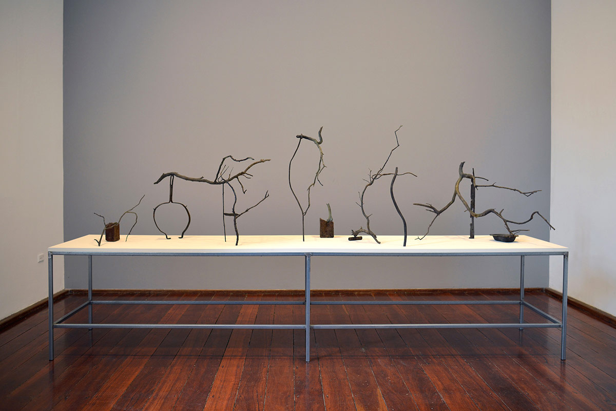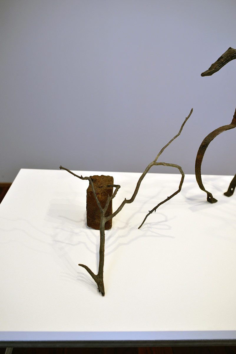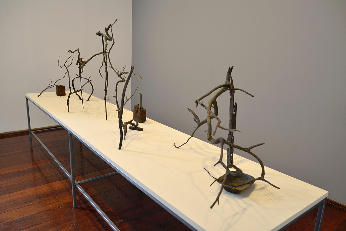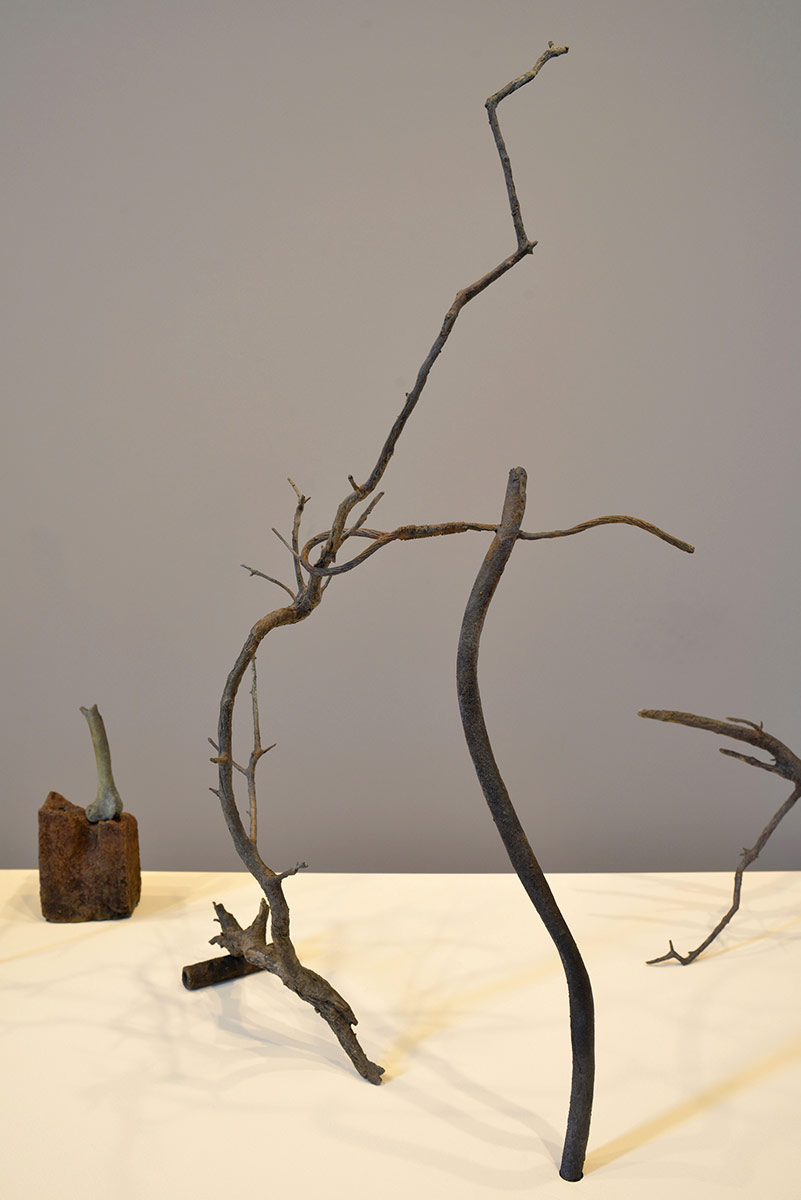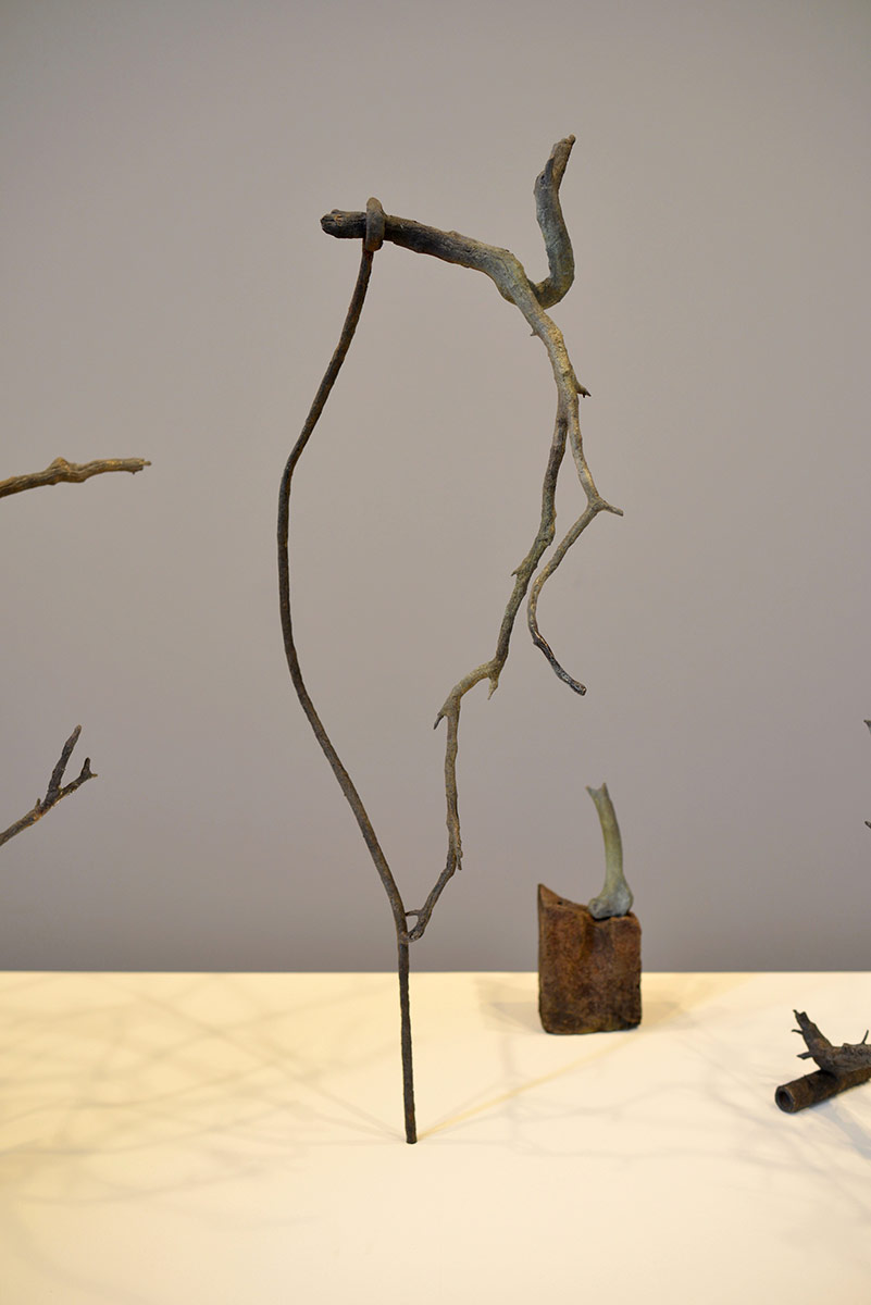 The Trail of Time is a collection of sandalwood branches and discarded and decayed farm objects/relics, re-made in to bronze through different processes of bronze casting, direct burnout and lost wax. They echo this process of dematerialisation while giving permanent form to the energetic transformation of burning wood.