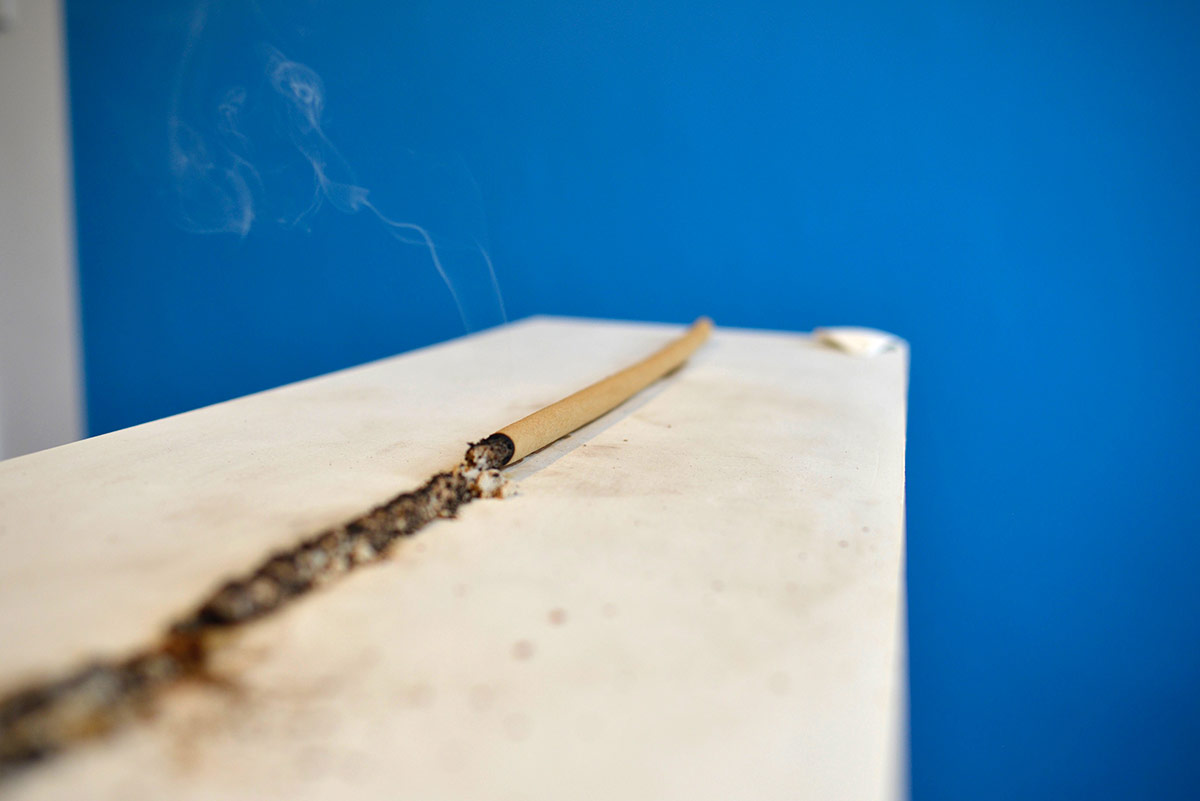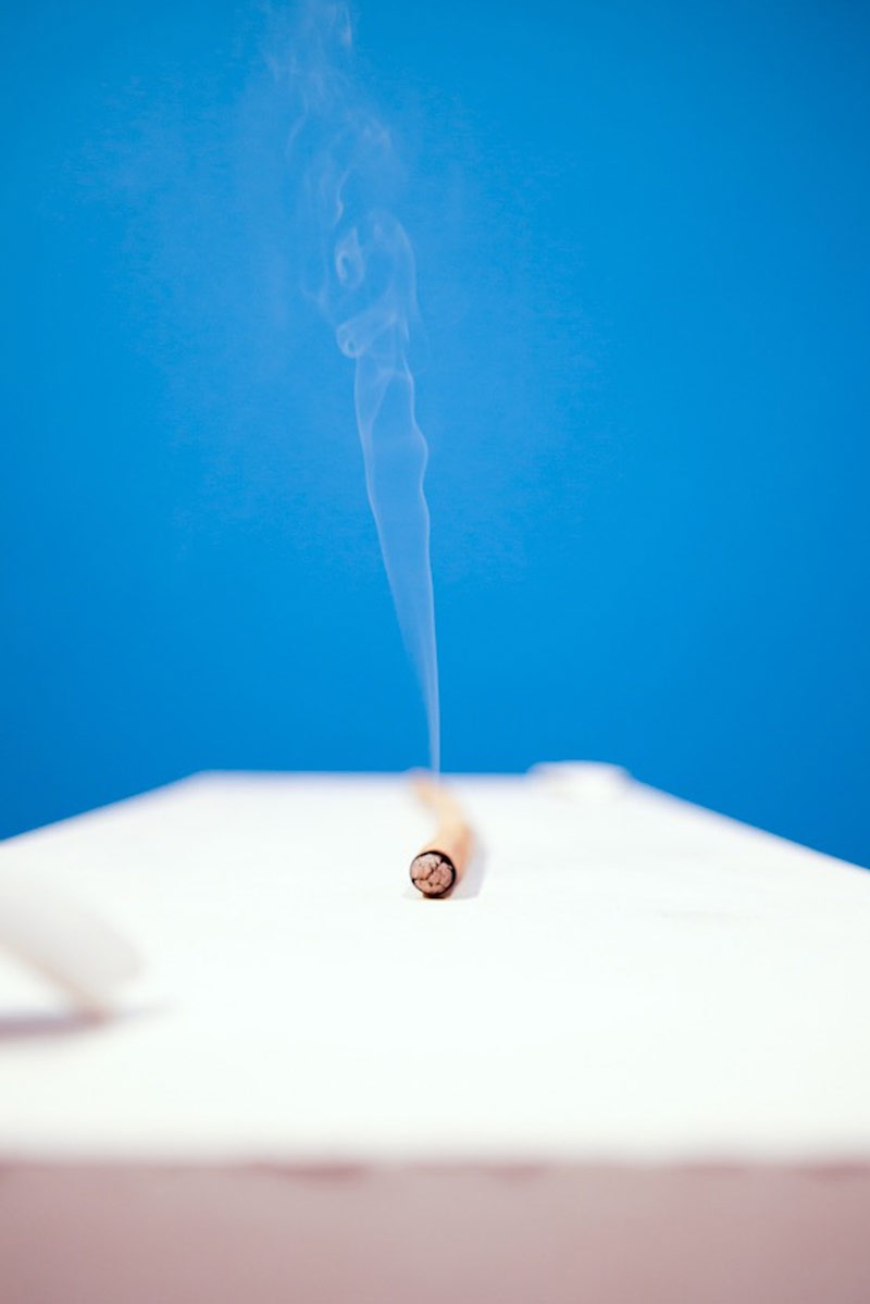 Michael Bullock, The Trail of Time, 2013, hand-made incense on plaster plinth, dimensions variable.